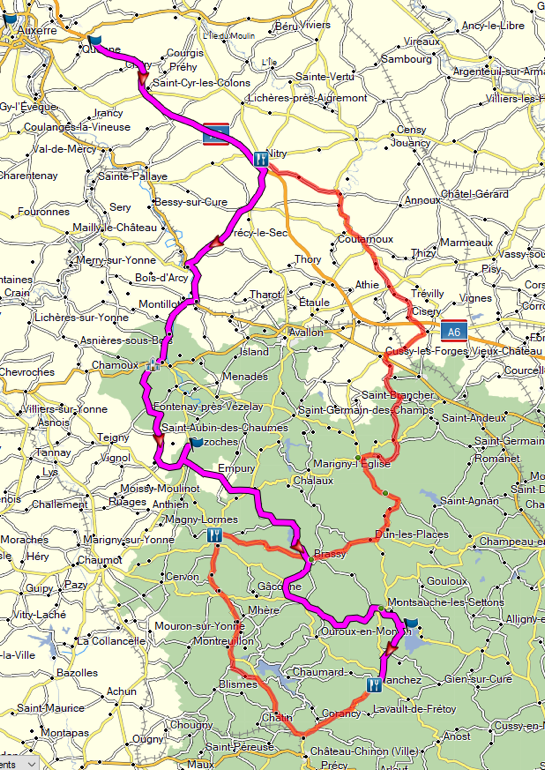 Notre départ aura lieu le samedi 10 octobre à 8h30 de la station-service Leclerc Ouest d’Achères la Forêt sur l’A6 (km 57), pour nous rendre via l’A6 sur l’aire de Venoy Grosse Pierre près d’Auxerre (89) où nous avons RV à 10h avec nos amis de la DR d’Auxerre. Soit environ 110 km d’autoroute (1h), puis petite pause-café.