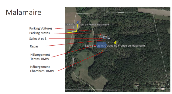 • Option A : Dans le prix est compris la possibilité de camper sur le terrain, les scouts nous prête les tentes pour cela (réservation à faire dans l’inscription), seul sera à apporter un tapis de sol (achat en option) et un duvet pour la nuit. Il est possible d’utiliser cette option pour une sortie en famille avec enfants. Ne pas oublier de positionner la case (demande tente dans le bulletin d’inscription). Attention cette option doit être prise au plus tôt afin de nous permettre d’approvisionner les tentes en nombre suffisant. Celles-ci sont de type patrouille et sont prévues par équipage moto / regroupement possible. Les tentes sont à monter soit même (des aides sont disponibles)