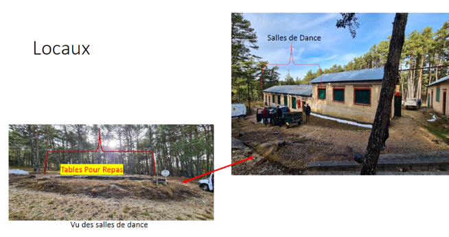 • Option B : il est possible de réserver des chambres disponibles sur le site, dans un bâtiment situé à 300m du lieu du bal. Seul sera à apporter un duvet pour la nuit, Chauffage électrique dans toutes les chambres couvertures sur place.