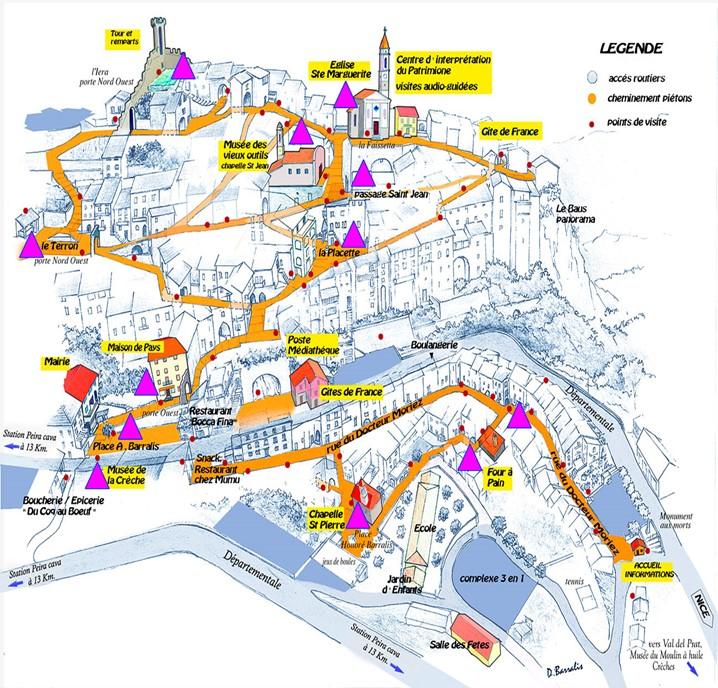 - Chapelle St Pierre, Musée de la Crèche, Maison de Pays, Placette, Eglise Ste Marguerite, Musée des Vieux Outils, Moulin à Huile du Val del Prat, Station de Peïra-Cava, Turini.