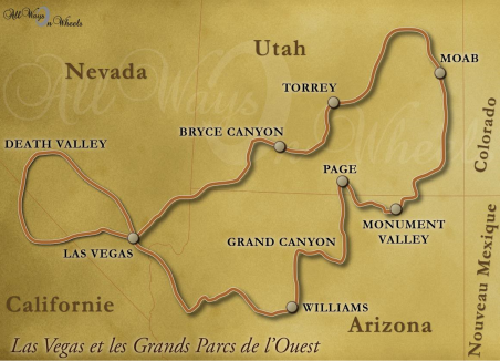 Equilibre du programme et des étapes, avec les plus beaux parcs de l’Ouest Américain et notamment Grand Canyon, Page et le Lac Powell, Monument Valley, Arches, Canyonlands (nord et sud), Capitol Reef, Bryce Canyon, Zion, Valley of Fire et Death Valley,