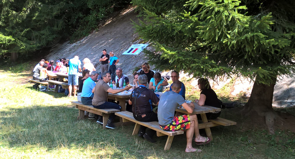 En fonds de vallée nous traversons l’Arly en Direction de Marthod au pied de la Dent de Cons pour passer le col du Vorger et poursuivre jusqu’au Collet de Tamié. Il est près de 14h et la pause attendue au Fort de Tamié est la bienvenue, au pied de la Belle Etoile, pour partager dans la bonne humeur générale un pique-nique canadien. L’endroit est sympathique et nous offre un superbe point de vue sur Albertville, et la vallée de l’Isère avec le Mont Blanc en toile de fonds.