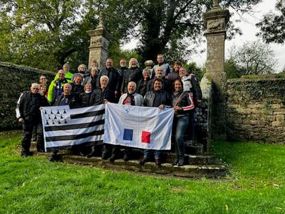Les pavés du petit port de Saint Goustan luisent sous la pluie. Nous démarrons prudemment , les uns derrière les autres, 12 motos, 12 BMW bien sûr!
