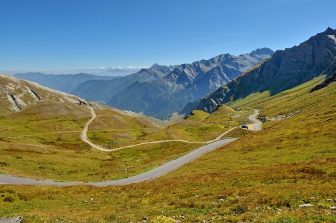 Nous découvrons un très joli village à l’allure montagnarde et qui est resté « dans son jus » avec maisons de pierres, petit pont de bois sur le ruisseau et une jolie petite chapelle au toit de lauzes. Le bien nommé restaurant « le Montagnard » nous accueille dans une salle basse, ambiance bois et sport d’hiver(troisième question de notre quizz : faute de raclette, quel plat italien à base de maïs nous permettra de repartir rassasiés ?)…d’ailleurs nous avons remarqué quelques remontées mécaniques, c’est aussi une station de ski. Mais là il fait un soleil de plomb et nous repartons vers le col Agnel, aux lacets bien rythmés. Inévitable photo devant la borne frontière entre la France et l’Italie…motards et touristes s’y pressent, d’autant plus que le col est assez étroit !