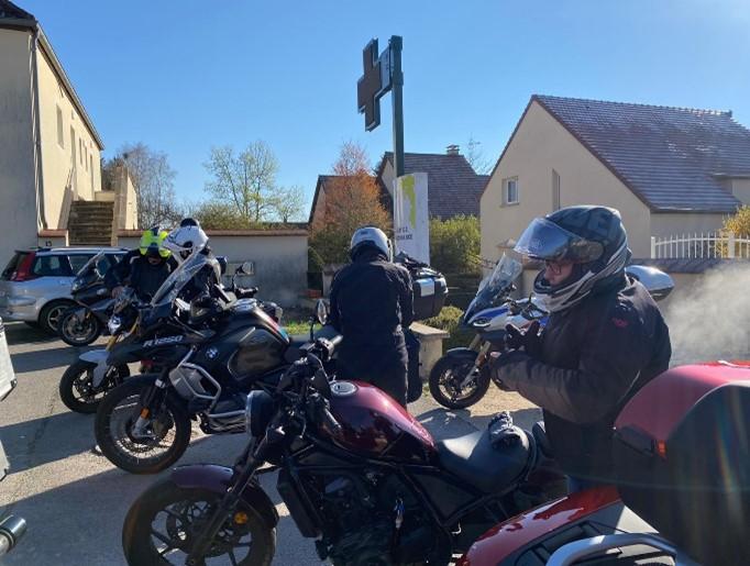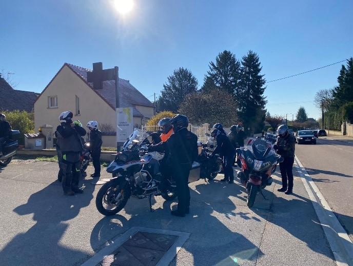 Nous nous sommes donnés rendez-vous le dimanche matin à Messigny où il faisait une température avoisinant les 1° avec le soleil. C’est donc avec une cohorte de 16 motos et 25 personnes que notre balade dominicale à commencer.