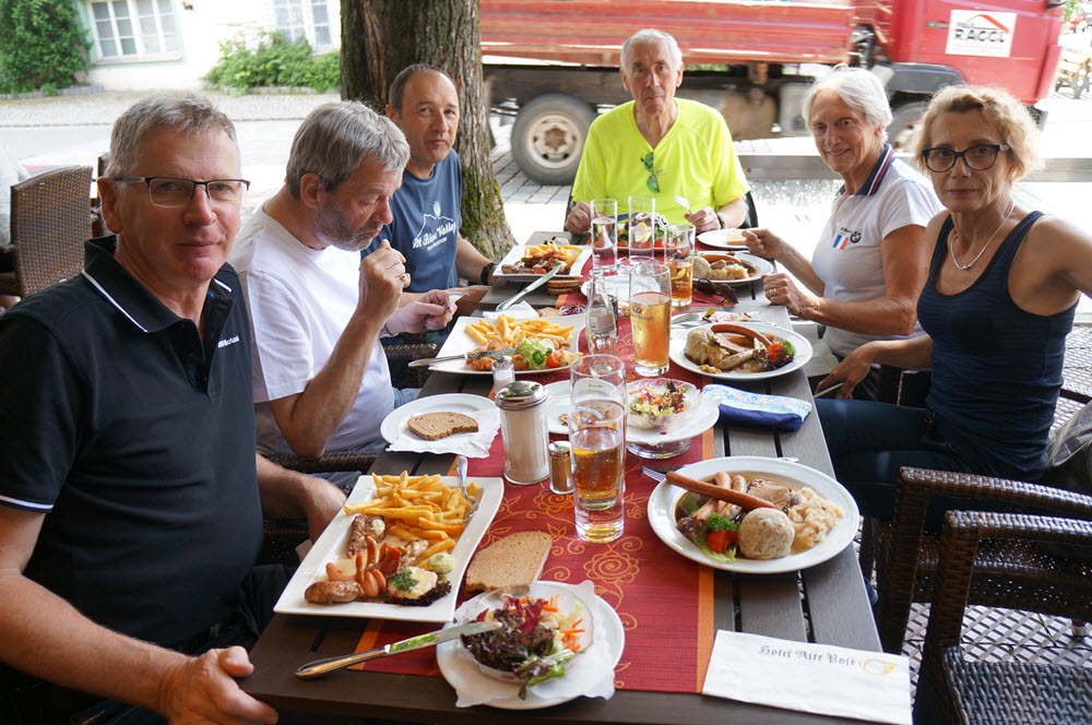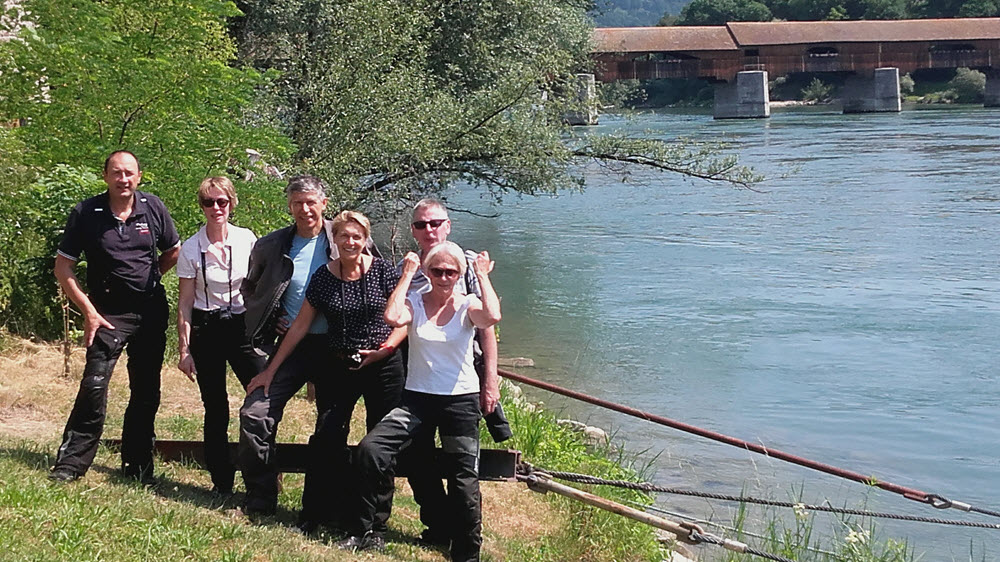 Une grande partie du groupe s’est retrouvée sur le trajet menant à Lermoos pour découvrir des points frontière remarquables entre l’Allemagne et la Suisse : Bad Säckingen et son pont de bois, Laufenburg et la borne frontière au milieu du Rhin qui divise en deux parties cette commune depuis 1806 sur volonté de Napoléon… puis les bords du Lac de Constance côté suisse de Stein am Rhein à Staad où l’architecte autrichien Hundertwasser a réalisé un bâtiment original.