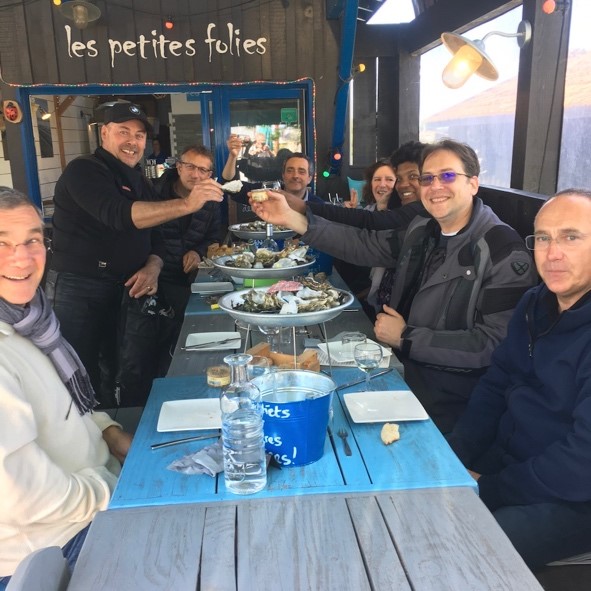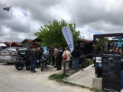 Samedi matin 11 Mai petit déjeuner organisé par Olivier le patron de DAFY MOTO à Bordeaux puis départ après les consignes de sécurité en convoi direction le Port ostréicole de Larros a Gujan Mestras.