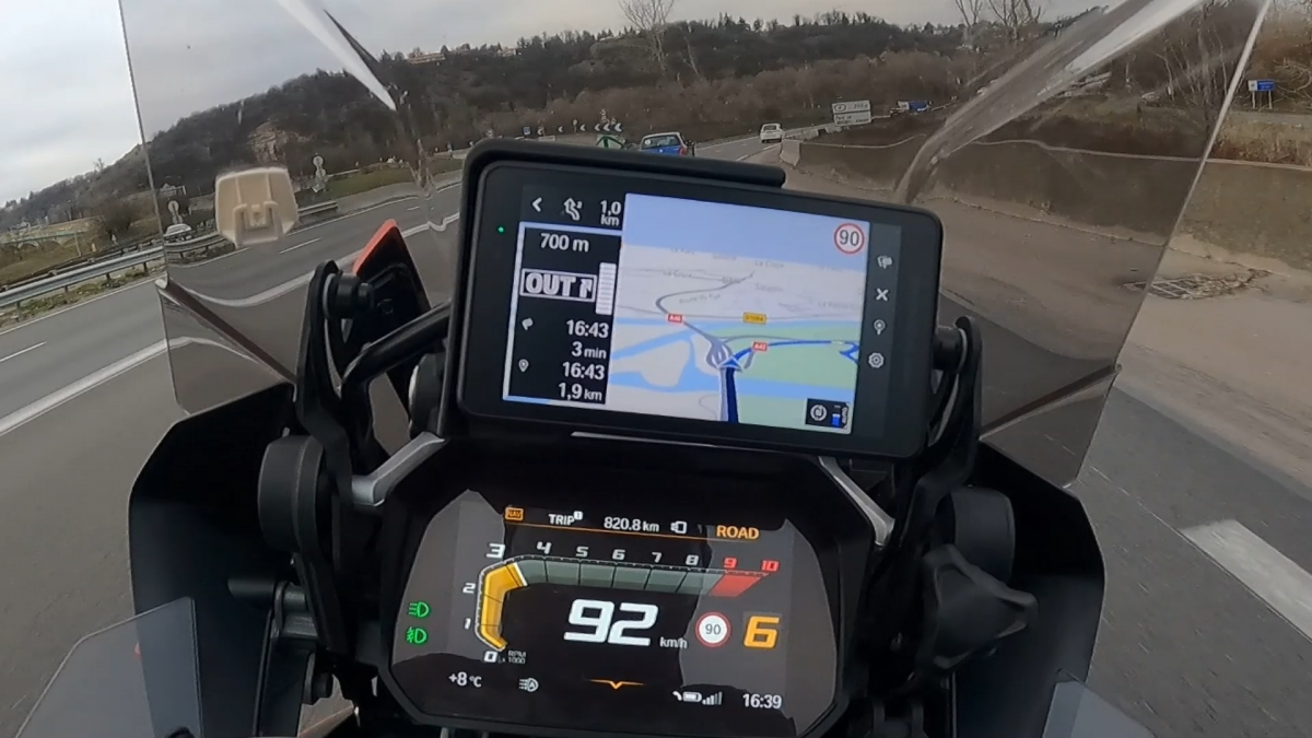 A la mise en route, la connection au wifi se fait très bien, du coup, les mises à jour se font en tâche de fond et je suis notifié dès que terminé. La connection à mon compte BMW ID se fait très bien également et tout se synchronise parfaitement. Là, clairement, bienvenue dans la technologie d'aujourd'hui. Comme le NAV VI, le GPS Navigator est autonome. Je le connecte à mon téléphone pour recevoir mes appels et lire ma musique. Là encore, pas de surprises, l’appairage se fait sans problèmes. C'est top !