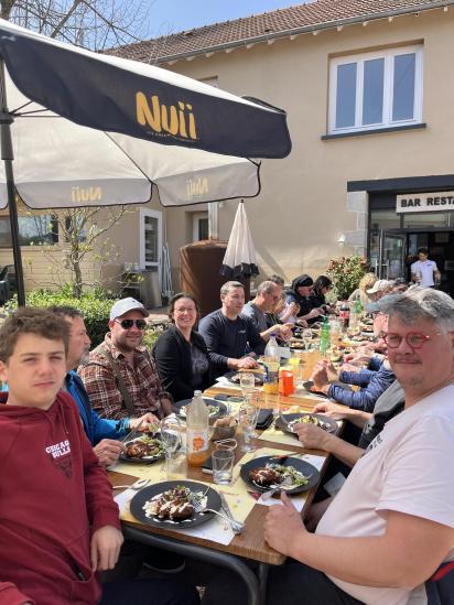 RDV café, croissant dés 9h00 à St Yore…. Là où tout va fort ! 14 motos au départ, 22 participants, soleil, ciel bleu sont au RDV.