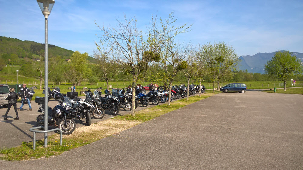 Rendez-vous était donné après Frangy à 9h15 et à 9h15 effectivement les 36 participants et les quelques 25 motos étaient sur le parking.