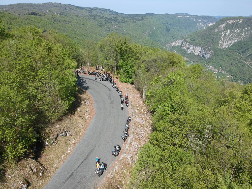 Petit arrêt dans une belle courbe afin d’apercevoir la magnifique vallée de le l’Ain en contre-bas.