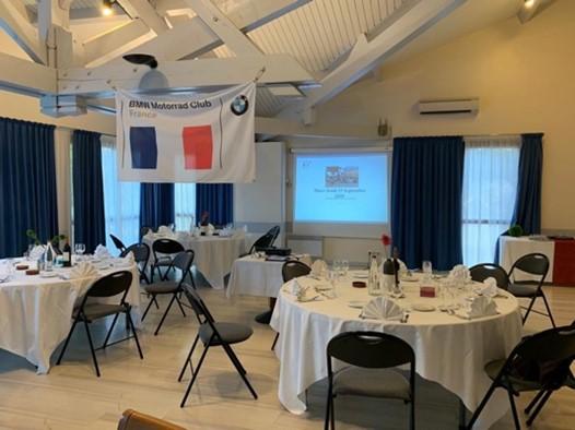 Vers 21H00 le diner fut servi, avec un menu élaboré et des vins sélectionnés par Thierry, Responsable de la Restauration et futur adhèrent car tout juste propriétaire d’une magnifique R 1250 GS.