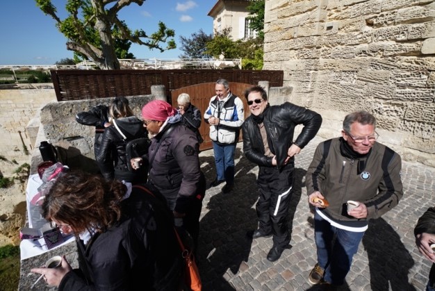 Christian a son initiative avait préparé Café, Chocolat , thé et viennoiseries pour un Petit déjeuner improvisé « Out Door » et original sur l’esplanade de l’église monolithe de Saint Emillion que nous avons rejoint après 1 heures de route à travers les vignobles de Grands crus , et les fumerolles mises en place par les vignerons contre le froid et le gel.
