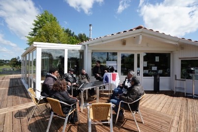 Après d’être réchauffé , direction plein sud vers le Golf des Graves pour une halte en terrasse au bord du lac et des greens, avant de repartir via les coteaux de la rive droite , vers Bordeaux ou nous avons déjeuné sur les bords de Garonne au pieds du pont de Pierre.
