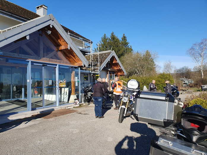 Dimanche, nous sommes partis sous le soleil après avoir dégivré les motos, en direction de Gex en passant par les Rousses, le col du Marchairuz, les lacets de la Côte de Nyon, Nyon où nous avons fait une pause café avec une vue sur le lac Léman. Nous avons repris la route pour notre halte déjeuner à Gex.
