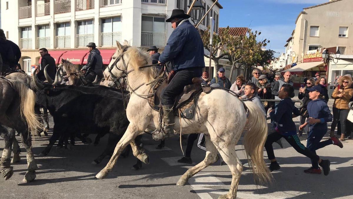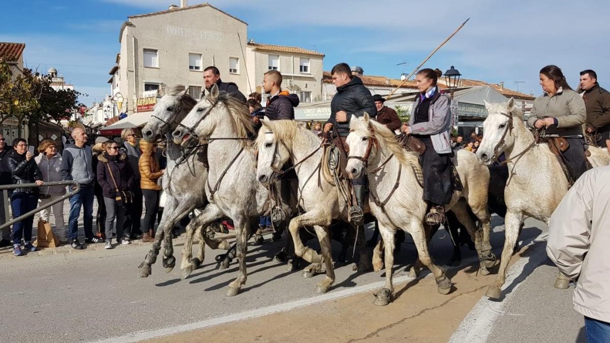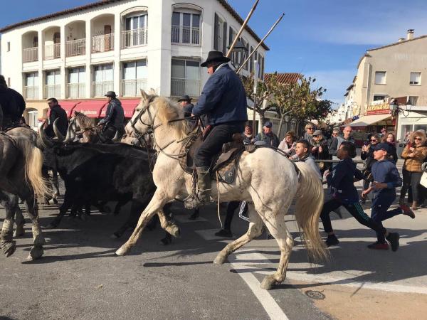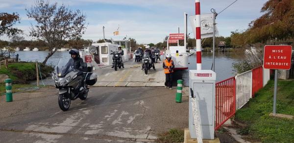 Après un petit café croissant partagé à Balaruc et sa vue imprenable sur Sète nous nous sommes dirigés vers les Saintes Marie de la Mer par la route... mais pas que.... nous avons pris le Bac du Sauvage, moyen bucolique de rejoindre les saintes façon la croisière s’amuse....