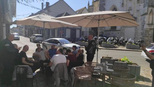 À Nogent le Rotrou c'est encore l'ombre de l'église qui attire nos montures, rejoignant celle du Président qui nous y attend pour un bout de chemin ensemble et convivial pique-nique à Bonneval, superbe village prolifique de monuments historiques.