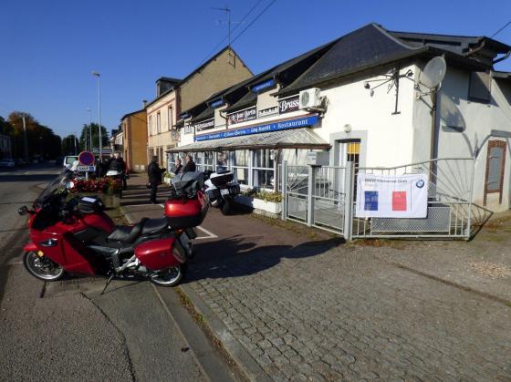 « Nous sommes partis de Boos à 2 motos, plus loin, nous avons rejoint d’autres motos et direction Verneuil sur Avre pour Azay-le-Rideau en groupe. Cathy avait fabriqué des rubans roses pour « Octobre Rose » que nous avons portés sur nos motos et vêtements. Nous avons roulé en formation tiroir et en quinconce (méthode très appréciable). Il n’y a pas eu d’imprudents. Tout le monde respecte la vitesse et la signalisation. Enfin bref, que du bonheur, et tout cela avec le soleil mais très froid. Nous nous sommes arrêtés pour une pause déjeuner dans le restaurant « Les Sittelles » à Montfort-le Gesnois, très beau cadre, personnel agréable et très bon repas. Nous reprenons la route vers la « Rotonde Ferroviaire » à Château du Loir - Montabon, arrêt non prévu, mais visite très intéressante. Ensuite de nouveau le départ vers Azay. La route est très agréable, des paysages magnifiques, des châteaux de toutes sortes. Pour Marie Claire, en tant que passagère, elle en a pris « plein les yeux. » Nous arrivons à Azay, joli hôtel « Des châteaux » pour 2 nuits, responsable accueillant, où nous avons partagé une soirée cool et un très bon repas. Thierry (notre DR) a eu une belle surprise de tout le groupe pour son organisation et Cathy avait fabriqué des étiquettes avec le prénom et nom pour nous connaître. (merci, Cathy)