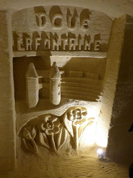 De nouveau le départ vers Doué-la-Fontaine, où nous avons déjeuné à « l’Auberge de la Rose » très bon repas et très joli cadre. Nous partons à pieds vers le site «Troglodyte de la sablière » à Doué. Une visite très intéressante. Le guide Eric Metivier a été très gentil, les sculptures sur les pierres en falun exceptionnelles….. L’histoire du site est incroyable. Retour vers l’hôtel, pour admirer d’autres châteaux et belles demeures. Après une journée bien remplie, repas excellent….