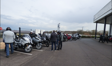 Après un rapide briefing pour rappel des consignes de roulage, notamment la circulation en tiroir pour les nouveaux venus. Vers 11h00 une vingtaine de motos partaient pour 50 km avant la pause déjeuner, l’après
