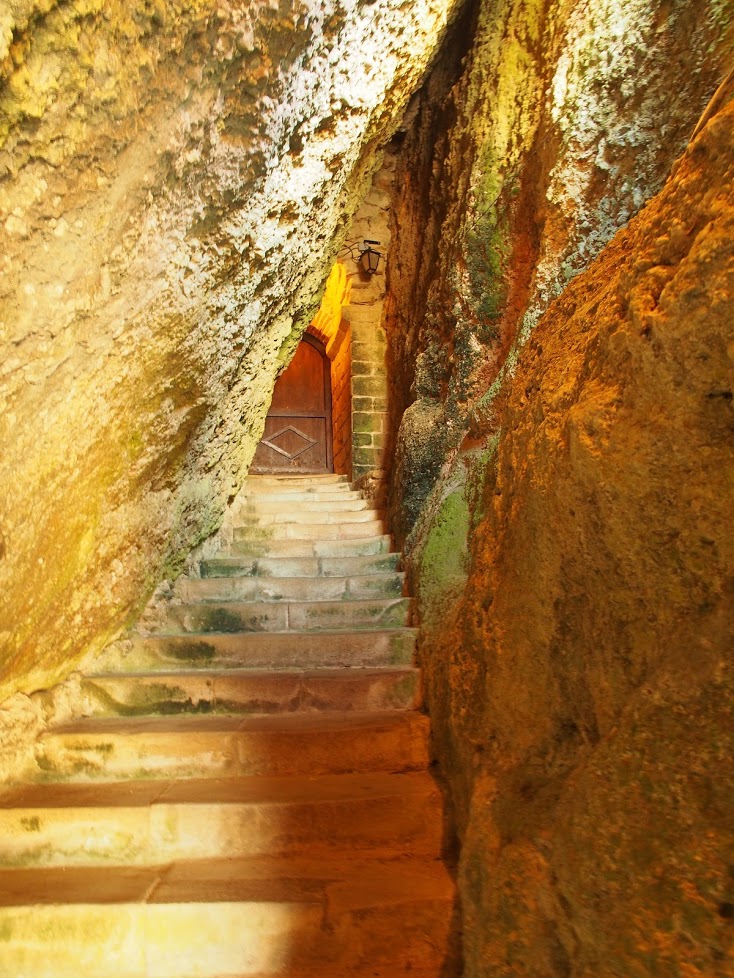 On dit que les motards ne fréquentent pas les églises et que seules les motos s'y font baptiser, c'est exagéré car nous nous indignâmes en choeur de ne pas avoir visité plus tôt celle-ci. Où l'on entre par une faille dans le roc, où la foi ressemble à un bastion à conquérir