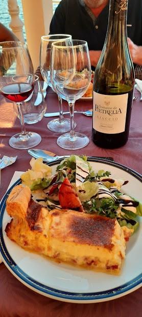 Pique-nique à Centuri Port où nous avons résisté à l'appel de la langouste pour partager un sandwich à la charcuterie Corse et une bonne tarte pomme ananas faite maison.