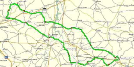 Itinéraire dense en intersections, mais fluide. Zone des haras de Vichy, traversée de Charroux, Gorges de la Sioule, pont roman de Menat,